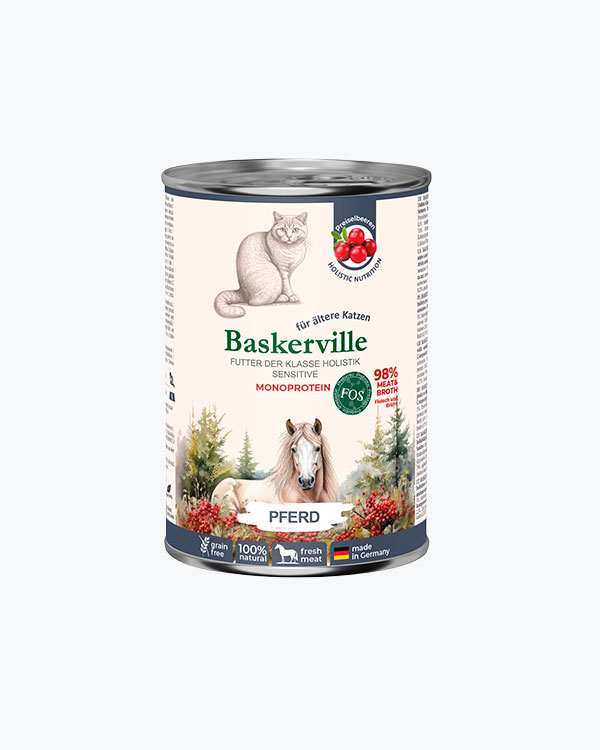 Konserwowany pokarm Baskerville klasy holistycznej został specjalnie opracowany dla kotów z wrażliwym układem trawiennym oraz starszych pupili, którzy potrzebują delikatnej, pożywnej i łatwostrawnej diety. Dzięki monobiałkowemu składowi i łagodnej formule karma jest łatwo przyswajalna, wspiera komfort trawienia i dobre samopoczucie Twojego kota.
