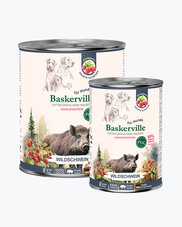 Baskerville holistic canned food is a high-quality nutrition specially formulated for dogs with sensitive digestion or prone to food allergies. The only source of animal protein is wild boar meat — nutritious, easily digestible, and hypoallergenic. This diet provides essential protein, iron, zinc, and B vitamins, strengthens muscles, supports energy, and helps maintain excellent physical condition.