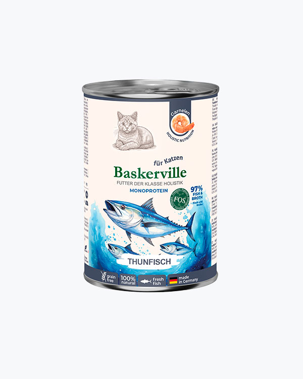 Baskerville holistic-class canned food is a complete and balanced wet nutrition of holistic quality, developed for cats who appreciate the natural taste and benefits of seafood. The formula contains an optimal combination of proteins, fats, carbohydrates, vitamins, and trace elements essential for a daily diet. Free from artificial colors, flavors, and preservatives.